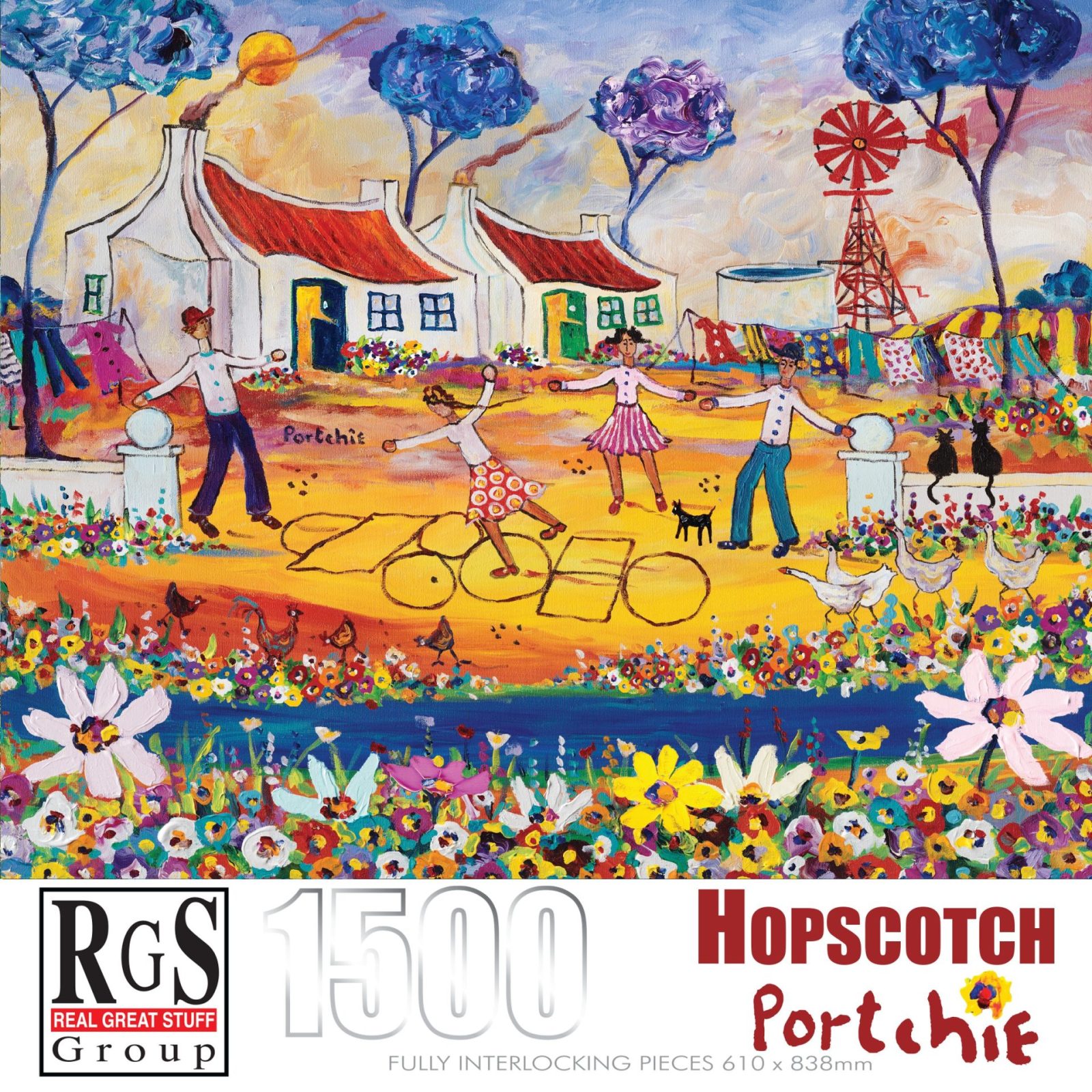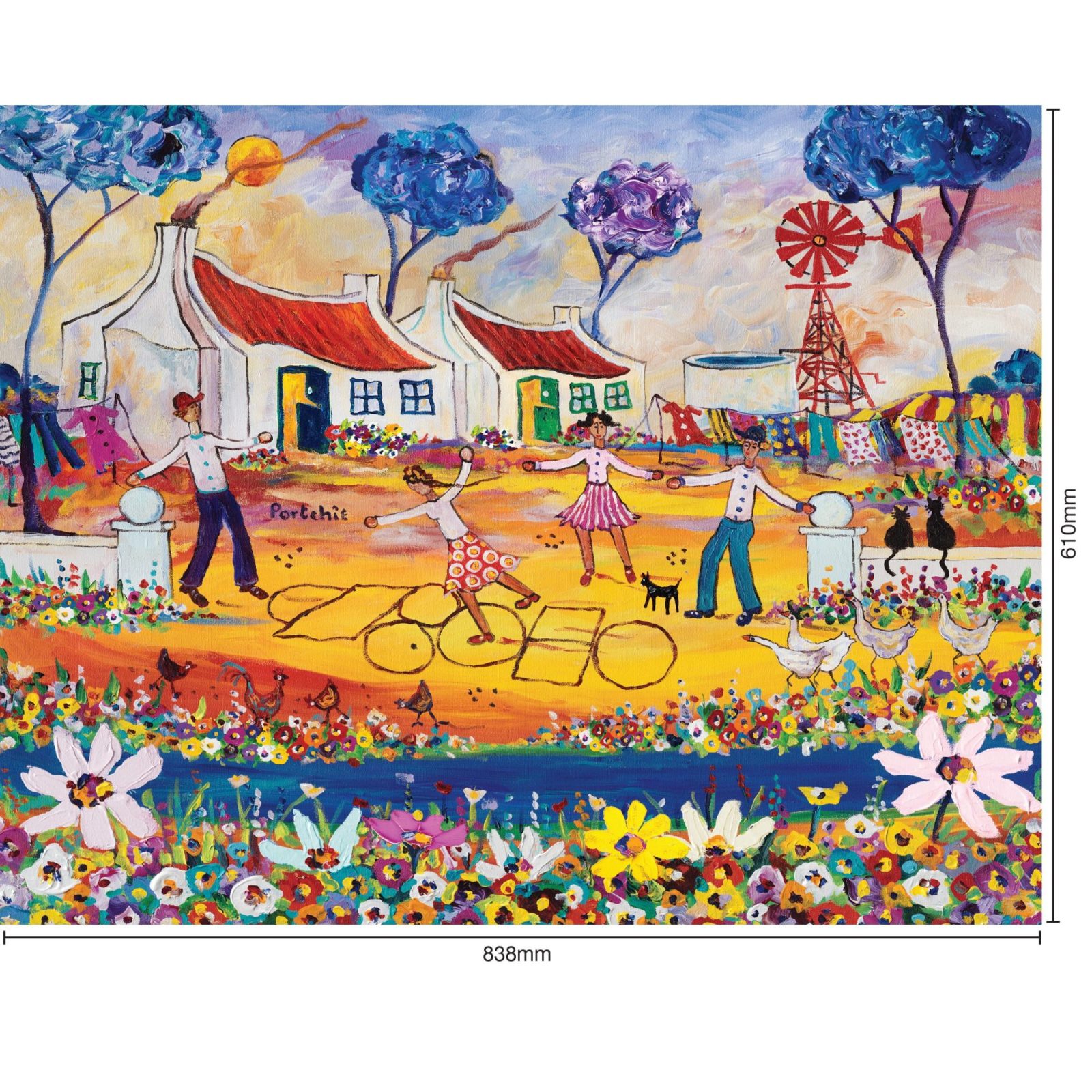 Hopscotch is our latest edition to our Portchie collection. Portchie is a renowned local artist, well known for his expressionistic and impressionistic bright, warm and happy colours.