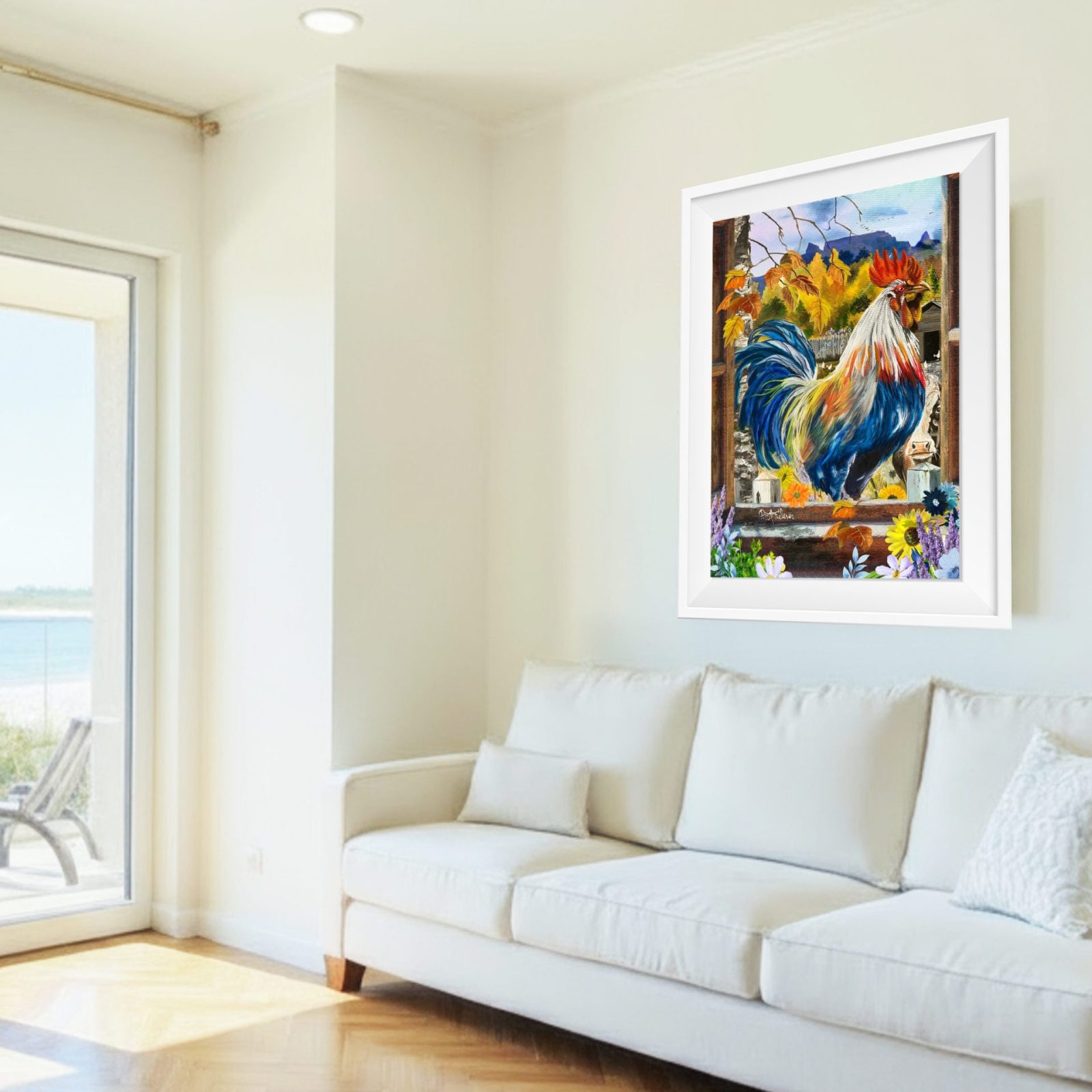 Your reliable farm friend sitting in the kitchen window after his morning wake up call.