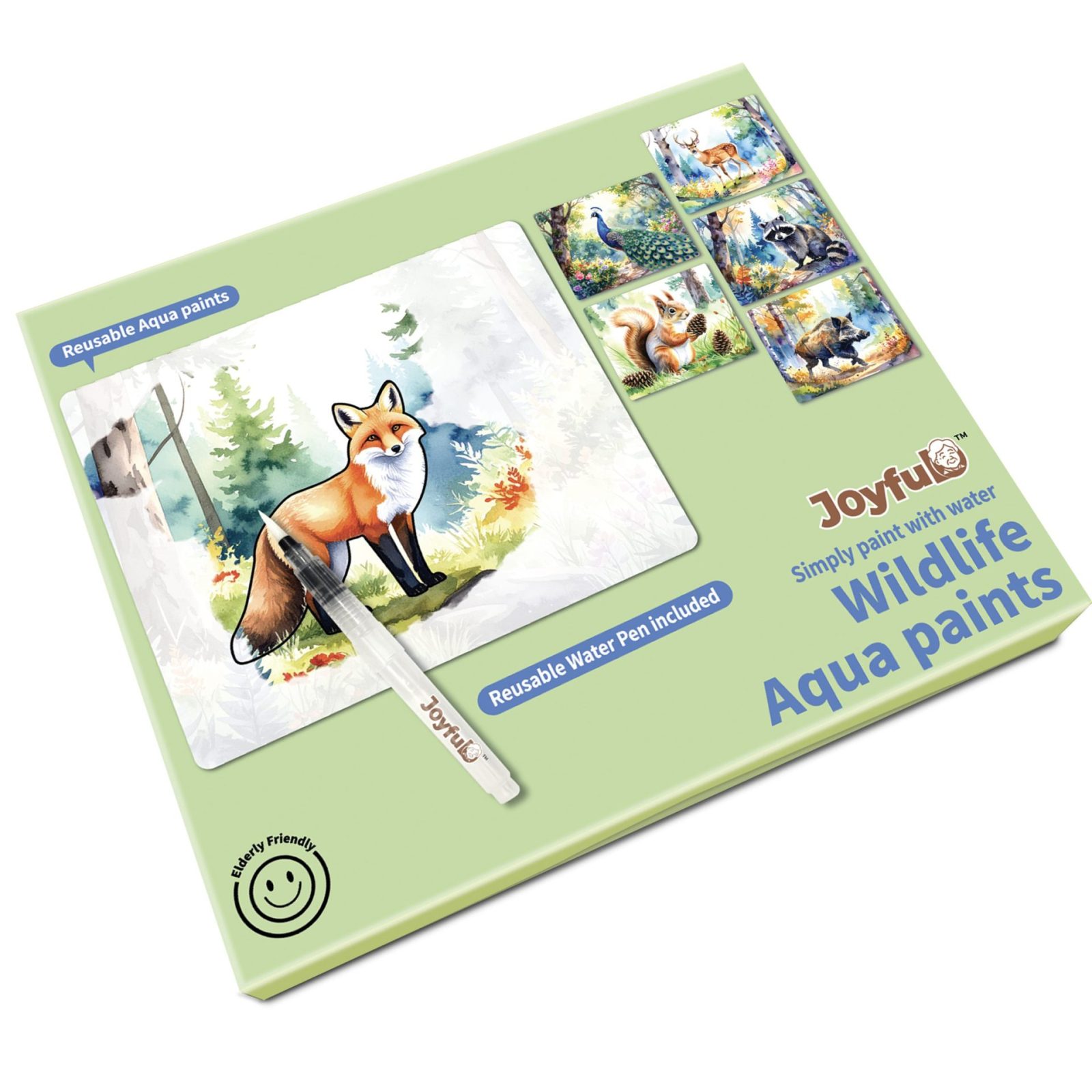 Enjoy the rewarding and therapeutic effects of painting wildlife with your water-filled brush. This set of 6 wildlife aqua paintigs can be enjoyed multiple time, especially by seniors with reduced dexterity, visual impairment, dementia and Alzheimers.