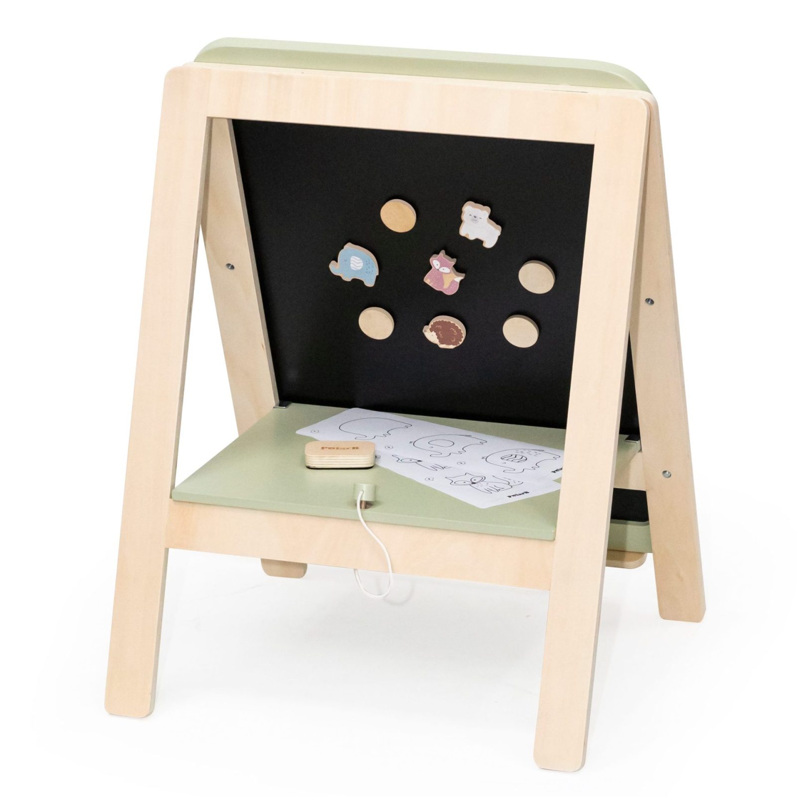 • Comes with 4 wooden magnets, 4 animal magnets, eraser, and 4 drawing guides