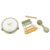 Crafted from smooth varnished wood and painted with non-toxic pastel hues, each instrument is just the right size for small hands and big imaginations. The safe wooden drumstick brings melodic magic to the xylophone, while the maracas and tambourine build rhythm, coordination, and auditory delight with every beat.