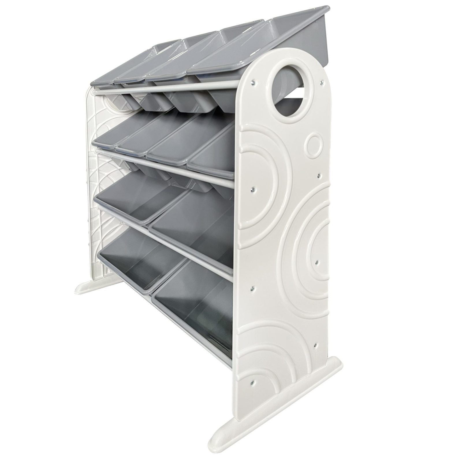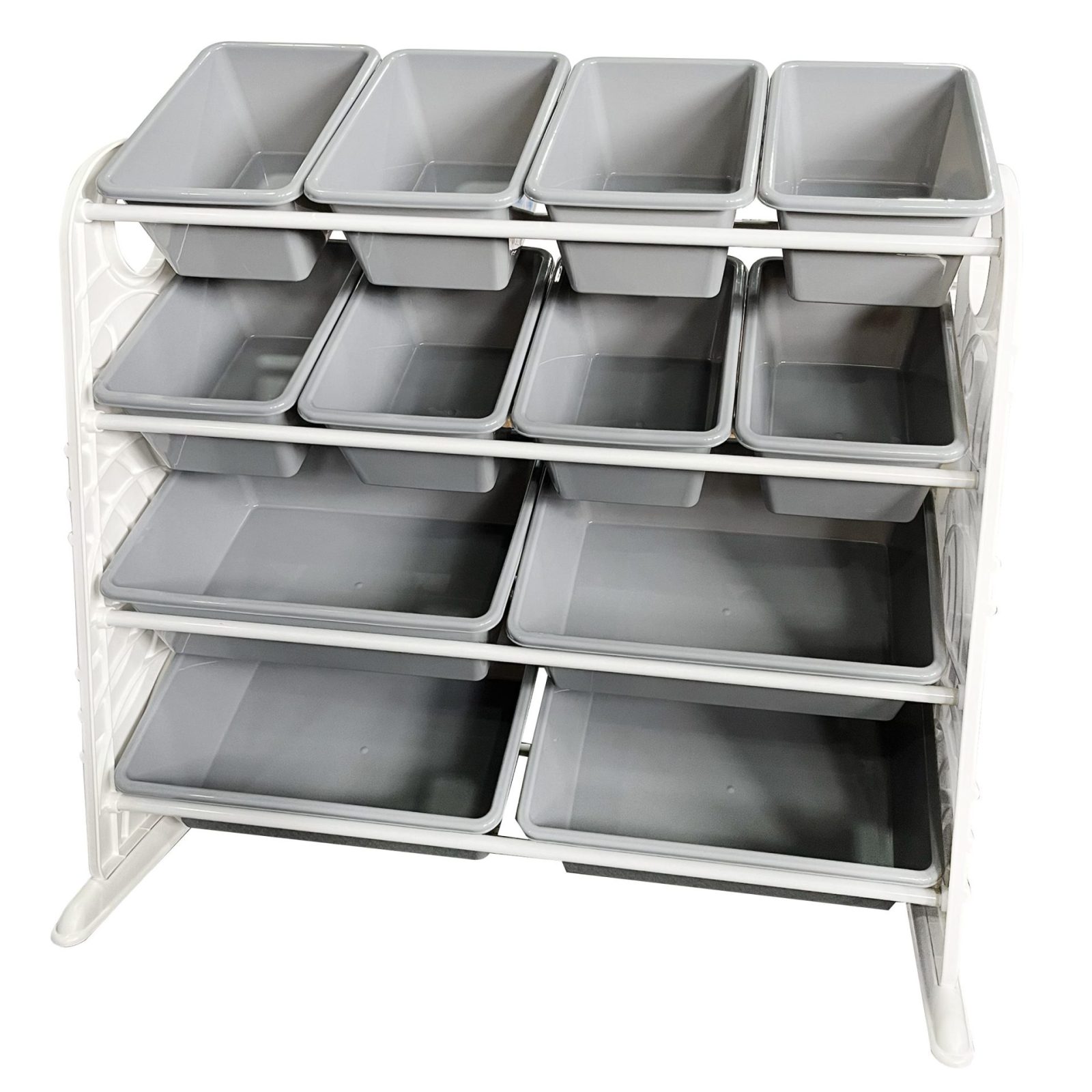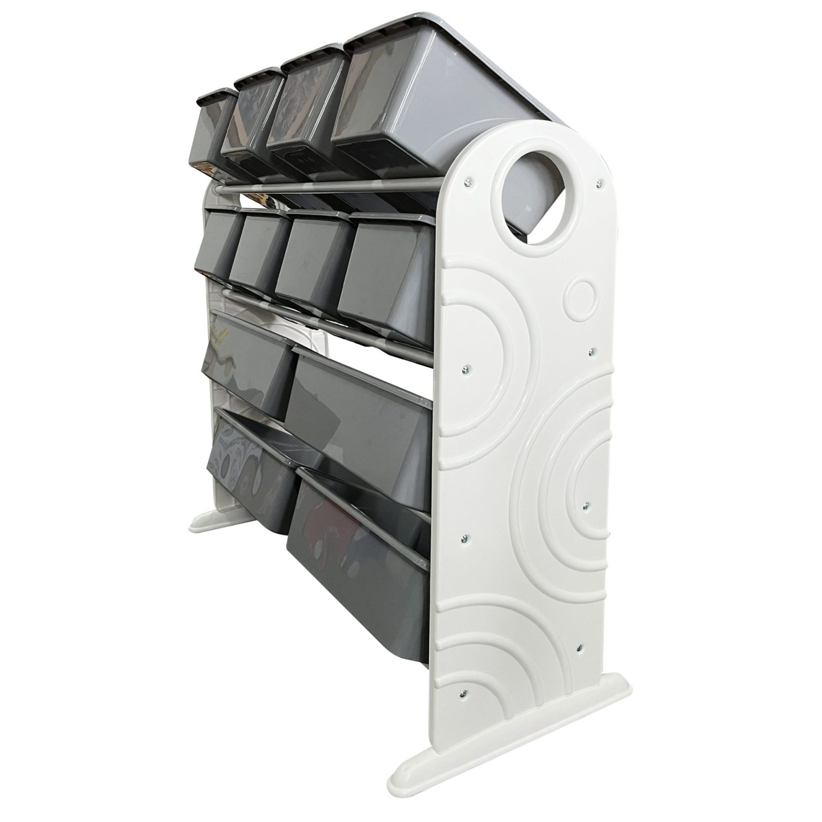 Crafted with durability in mind, the bins come in a sleek grey finish, while the heavy-duty plastic frame in white ensures stability and long-lasting use. Whether you’re tidying up an educational space or creating an efficient arts and crafts station, this storage rack makes organization effortless while keeping essential items within easy reach.