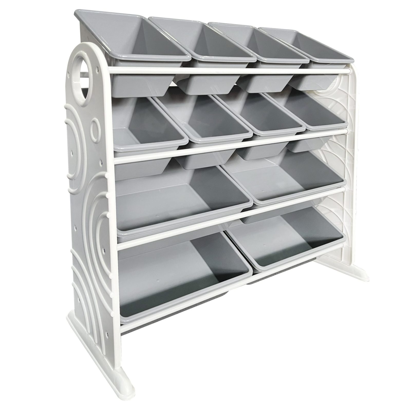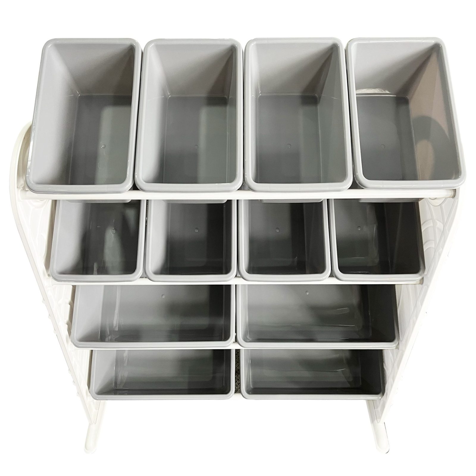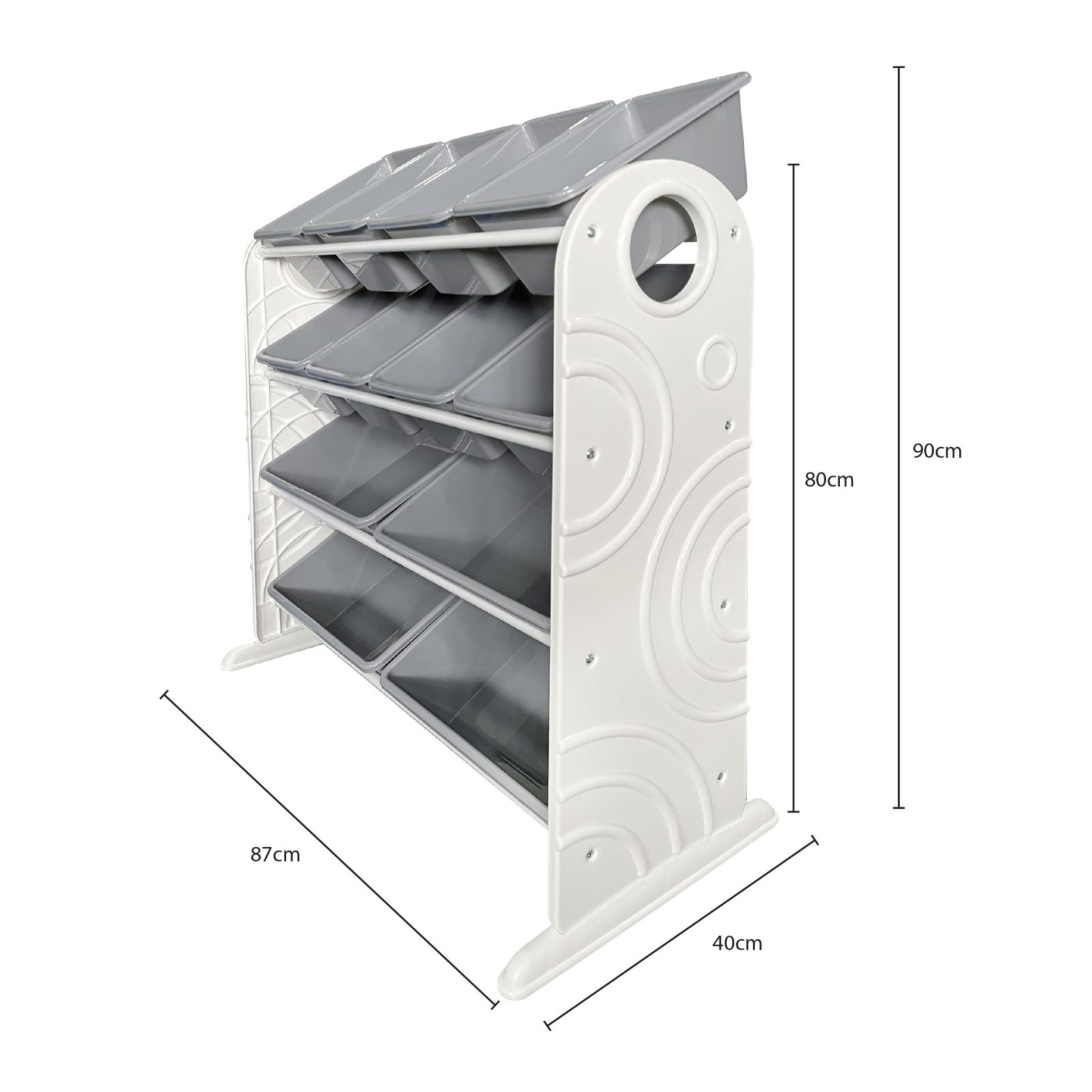 Crafted with durability in mind, the bins come in a sleek grey finish, while the heavy-duty plastic frame in white ensures stability and long-lasting use. Whether you’re tidying up an educational space or creating an efficient arts and crafts station, this storage rack makes organization effortless while keeping essential items within easy reach.