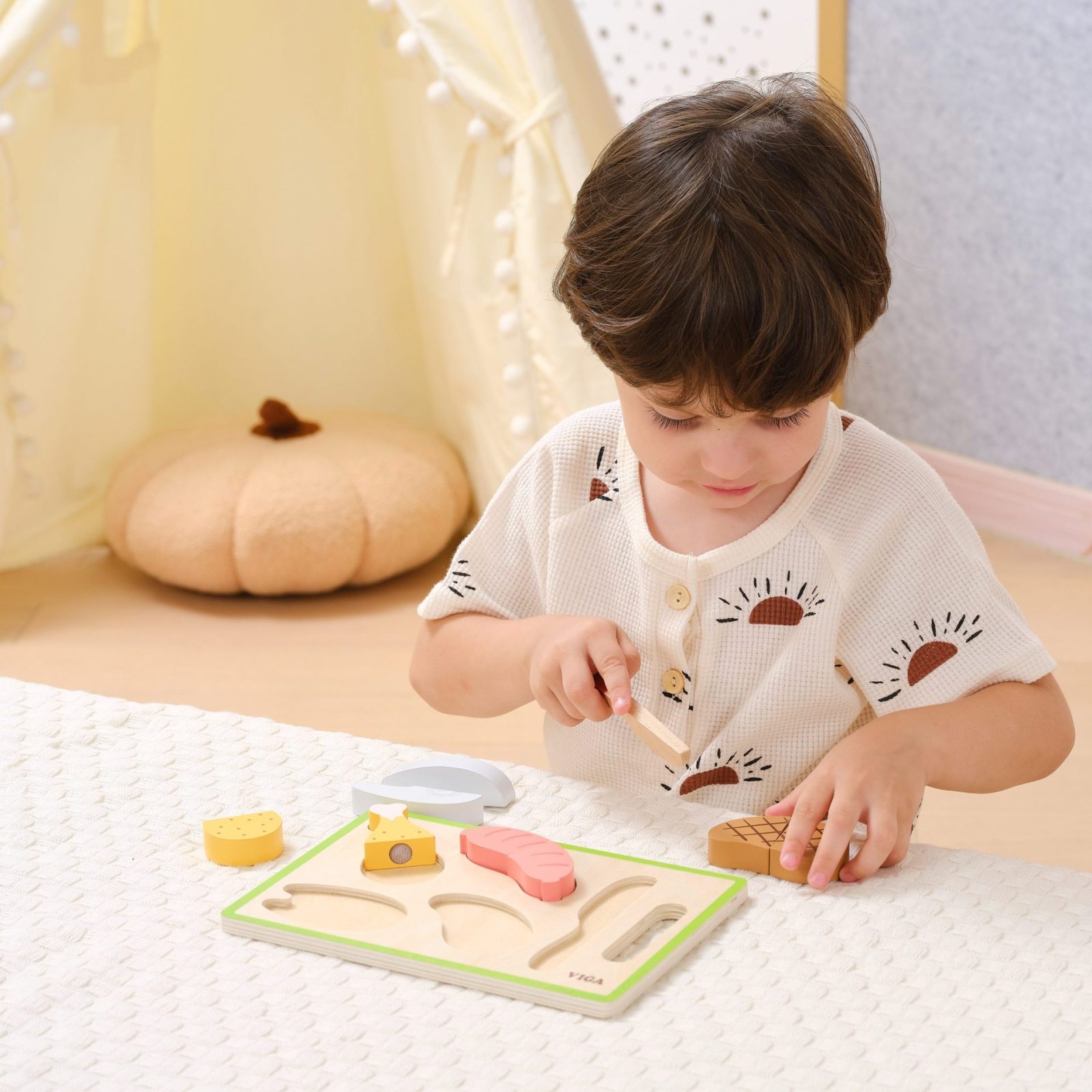 Nurture your child’s natural curiosity and love of food with this versatile toy. The Cutting Meat set not only sparks creativity but also fosters important developmental milestones. Watching your little one confidently wield the wooden knife and expertly arrange the play food will fill you with pride.
