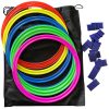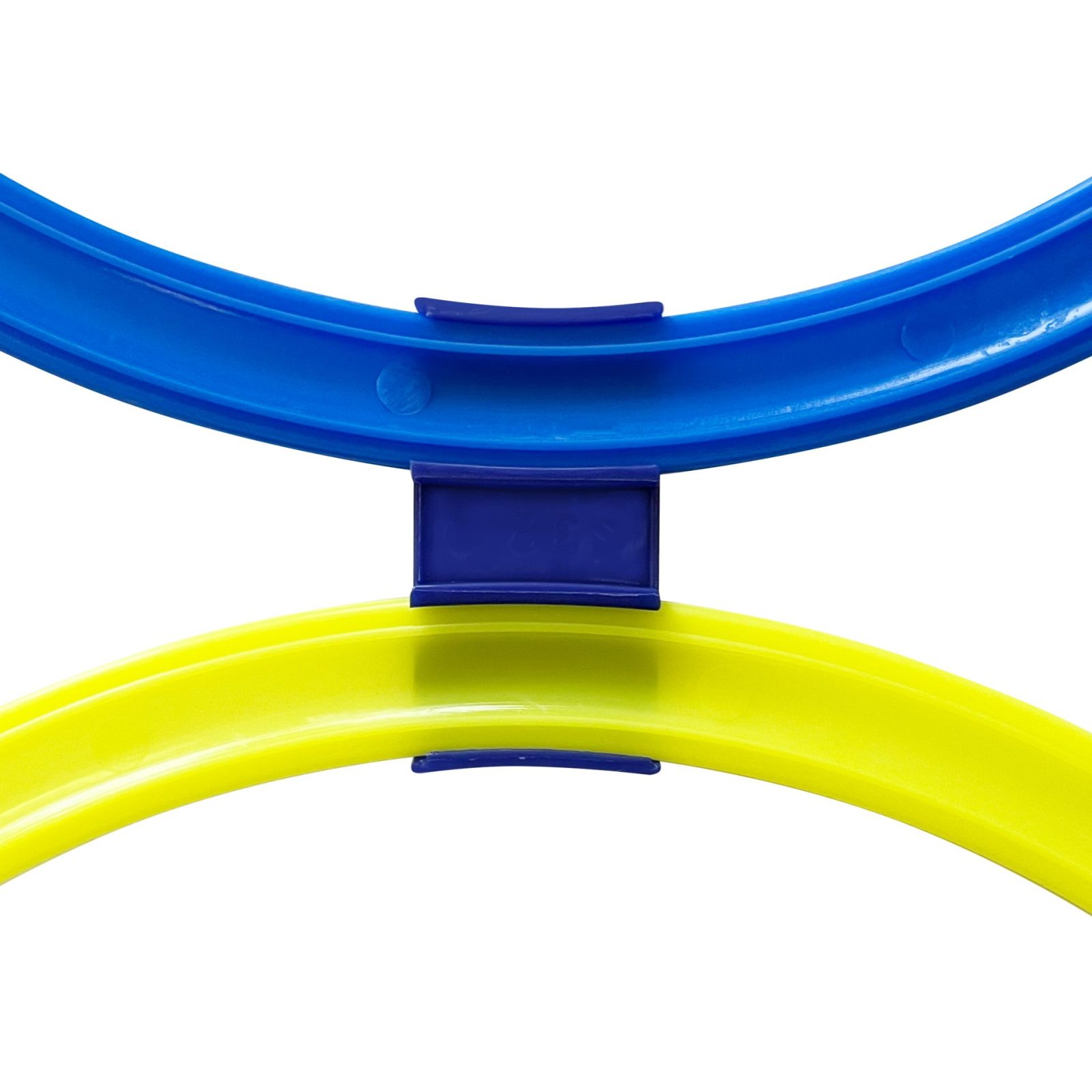 These rings are weatherproof, tearproof, durable, waterproof, and are very flexible. They measure approx. 30cm in diameter. They are easy to configure in many pattern variations and assemble on the floor. Buckle the rings together to hold them in place. The rings are portable, flexible and durable.