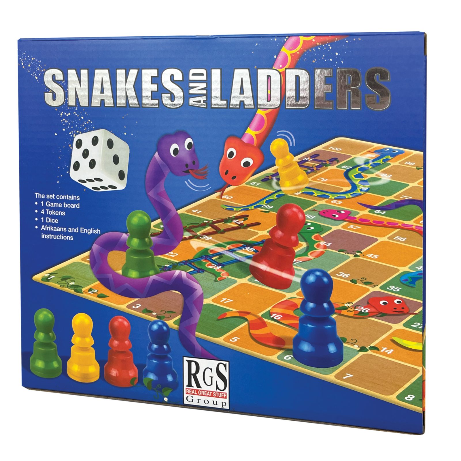 With an easy-to-assemble game board, 4 playing tokens, a single die, and simple Afrikaans and English instructions, Snakes & Ladders is a blast for 2-4 players aged 4+.